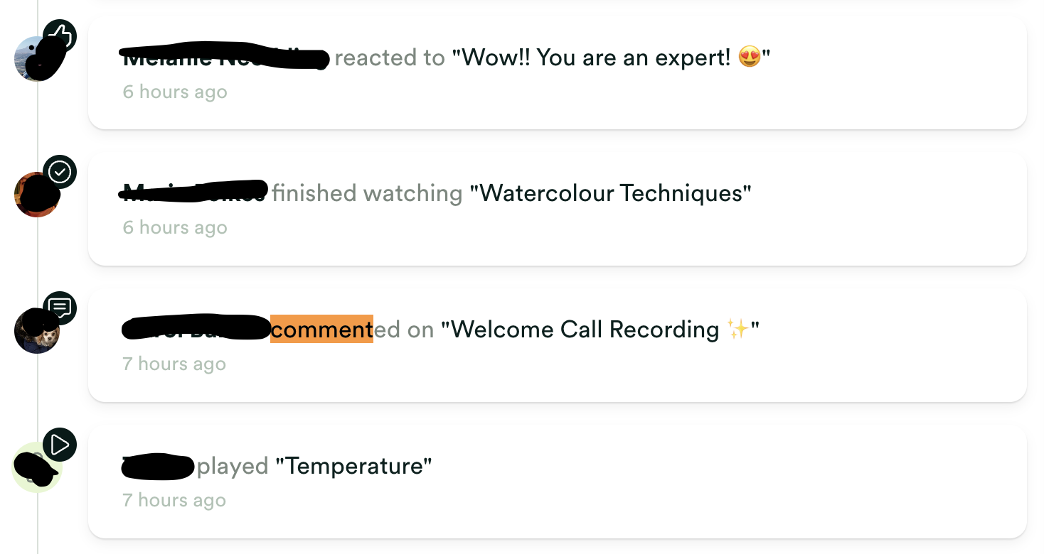 Hi there - is there an easy way to filter the "activity" section in the hub to show only comments from members (in both the discussion and under individual videos?) Currently the only way I can ensure I respond to all comments under videos and not miss any is either to go to each individual video (time consuming when there are >50!) or use Control+F when I'm in the activity section searching for "comment" and work through them this way as in the photo attached .... (also time consuming!) Thank you!